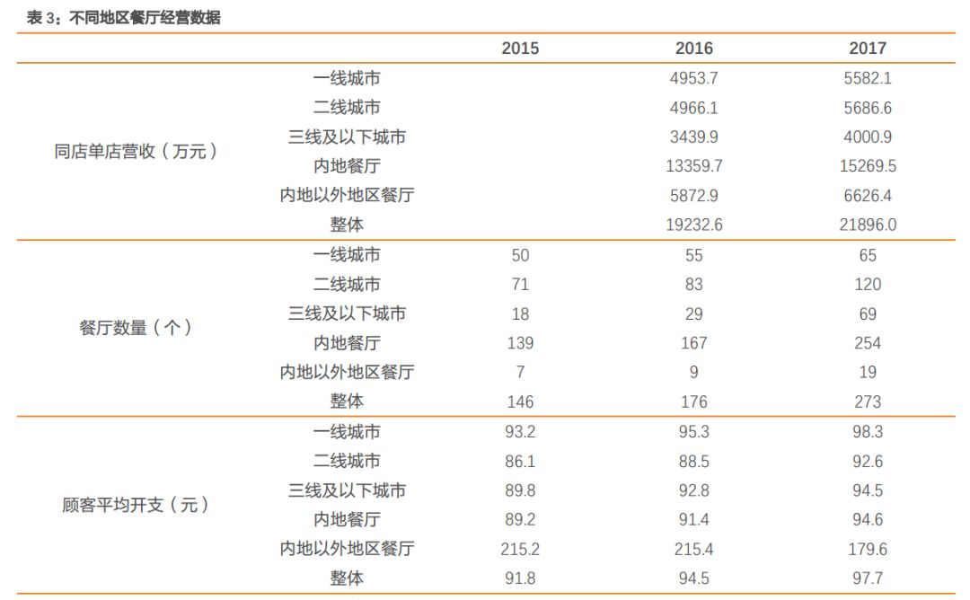 从结构上看,一二线的门店营收较高,三线的门店营收较低,但实际上客户平均开支并没有那么大的区别。笔者觉得营收的差距可能是因为三线门店的面积较小,或者是营业时间较短。