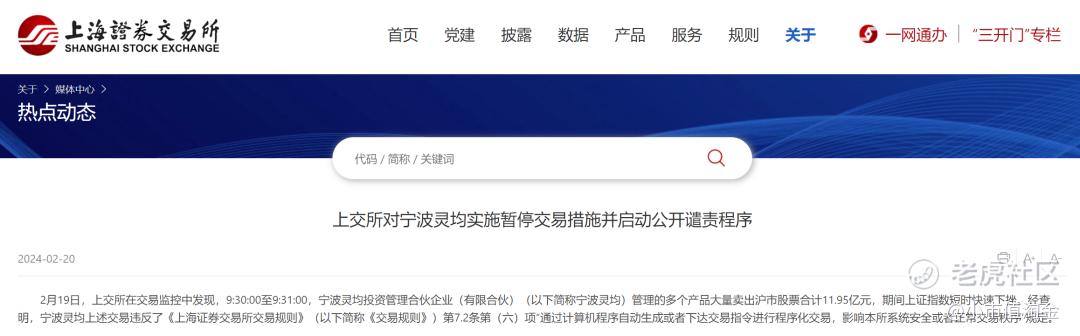 2月19日,宁波灵均投资利用不到一分钟的时间,在沪深两市累计卖出了25.67亿元的股票,这导致了市场短期内的下跌。
