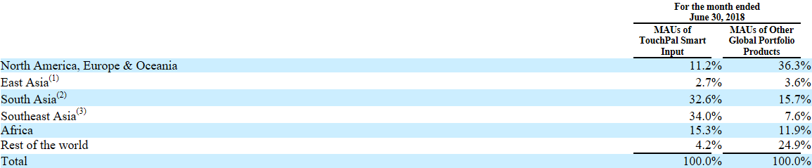 截止2018年上半年,触宝输入法在240个国家拥有1.23亿日活用户,比2017年的7560万上涨了75.3%。截止2018年第二季度,公司APP下载用户较2017年第二季度上涨了178.7%。主要产品