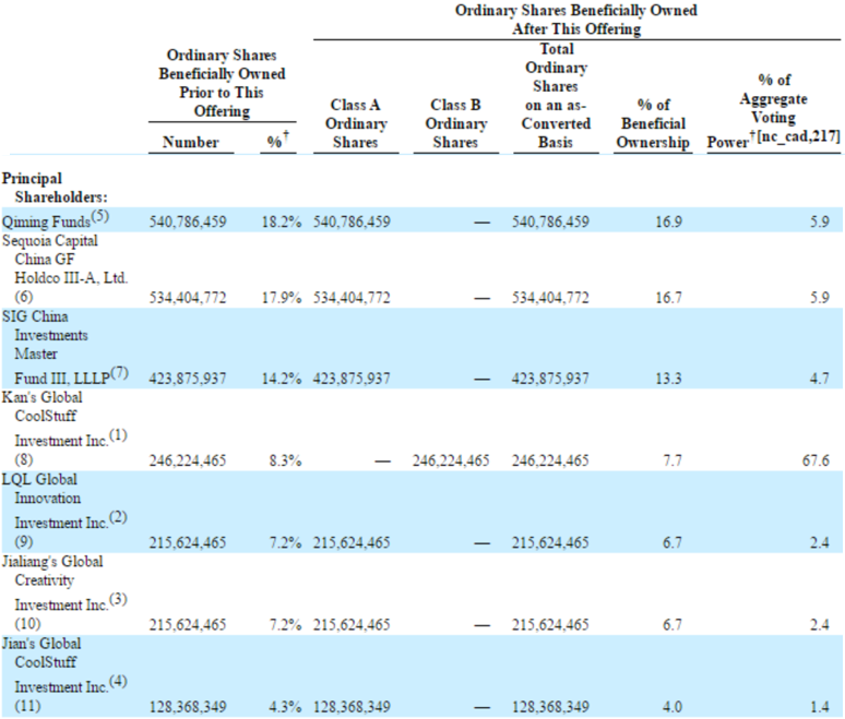 公司创始人张瞰持有2.46亿股B类股票,占总股份数的7.7%,拥有公司67.6%的投票权。知名股权投资基金红杉资本持有公司5.34亿股A类股票,拥有公司5.9%的投票权。