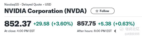 我们美股投资网不认为英伟达现在 852美元算高,因为我们财报前视频已经深度分析过,按动态市盈率计算,我们给出 英伟达1500美元的目标价。