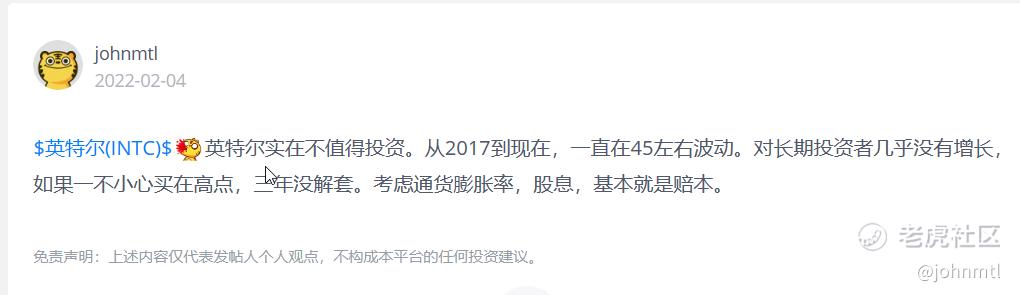 {"i18n":{"language":"zh_CN"},"data":{"magic":2,"id":281790086656208,"tweetId":"281790086656208","gmtCreate":1709824917575,"gmtModify":1709825183067,"author":{"id":4090588704980160,"idStr":"4090588704980160","authorId":4090588704980160,"authorIdStr":"4090588704980160","name":"johnmtl","avatar":"https://static.laohu8.com/default-avatar.jpg","vip":1,"userType":1,"introduction":"","boolIsFan":false,"boolIsHead":false,"crmLevel":1,"crmLevelSwitch":0,"individualDisplayBadges":[],"fanSize":0,"starInvestorFlag":false},"themes":[],"images":[{"img":"https://static.tigerbbs.com/7bf195bd915a12e8a9ebac1d09ba94d4","width":"1020","height":"295"}],"coverImages":[{"img":"https://static.tigerbbs.com/7bf195bd915a12e8a9ebac1d09ba94d4","width":"1020","height":"295"}],"html":"<html><head></head><body><a target=\"_blank\" href=\"https://laohu8.com/S/INTC\">$英特尔(INTC)$ </a>2022年初的帖子,现在还是44多块<span>[捂脸]</span><span>[捂脸]</span><span>[捂脸]</span><span>[捂脸]</span><span>[捂脸]</span><span>[捂脸]</span><span>[捂脸]</span><span>[捂脸]</span><span>[捂脸]</span>\n<br>\n<br>\n<br>\n<img src=\"https://static.tigerbbs.com/7bf195bd915a12e8a9ebac1d09ba94d4\" tg-width=\"1020\" tg-height=\"295\"></body></html>","htmlText":"<html><head></head><body><a target=\"_blank\" href=\"https://laohu8.com/S/INTC\">$英特尔(INTC)$ </a>2022年初的帖子,现在还是44多块<span>[捂脸]</span><span>[捂脸]</span><span>[捂脸]</span><span>[捂脸]</span><span>[捂脸]</span><span>[捂脸]</span><span>[捂脸]</span><span>[捂脸]</span><span>[捂脸]</span>\n<br>\n<br>\n<br>\n<img src=\"https://static.tigerbbs.com/7bf195bd915a12e8a9ebac1d09ba94d4\" tg-width=\"1020\" tg-height=\"295\"></body></html>","text":"$英特尔(INTC)$ 2022年初的帖子,现在还是44多块[捂脸][捂脸][捂脸][捂脸][捂脸][捂脸][捂脸][捂脸][捂脸]","highlighted":1,"essential":1,"paper":1,"likeSize":2,"commentSize":1,"repostSize":0,"favoriteSize":0,"link":"https://laohu8.com/post/281790086656208","repostId":0,"isVote":1,"tweetType":1,"viewCount":4095,"commentLimit":10,"likeStatus":false,"favoriteStatus":false,"reportStatus":false,"symbols":["INTC"],"verified":2,"subType":0,"readableState":1,"langContent":"CN","currentLanguage":"CN","warmUpFlag":false,"orderFlag":false,"shareable":true,"causeOfNotShareable":"","featuresForAnalytics":[],"commentAndTweetFlag":false,"andRepostAutoSelectedFlag":false,"upFlag":false,"length":97,"xxTargetLangEnum":"ZH_CN"},"commentList":[{"id":281790910517480,"commentId":"281790910517480","gmtCreate":1709824995617,"gmtModify":1709824999459,"authorId":4090588704980160,"author":{"id":4090588704980160,"idStr":"4090588704980160","authorId":4090588704980160,"name":"johnmtl","avatar":"https://static.laohu8.com/default-avatar.jpg","vip":1,"crmLevel":1,"crmLevelSwitch":0,"individualDisplayBadges":[]},"repliedAuthorId":0,"objectId":281790086656208,"objectIdStr":"281790086656208","type":1,"supId":0,"supIdStr":"0","prevId":0,"prevIdStr":"0","content":"对不起,45了,和2022一样。","text":"对不起,45了,和2022一样。","html":"对不起,45了,和2022一样。","likeSize":1,"commentSize":0,"subComments":[],"verified":10,"allocateAmount":0,"commentType":"valid","coins":0,"score":0,"disclaimerType":0}],"hasMoreComment":true,"orderType":2}