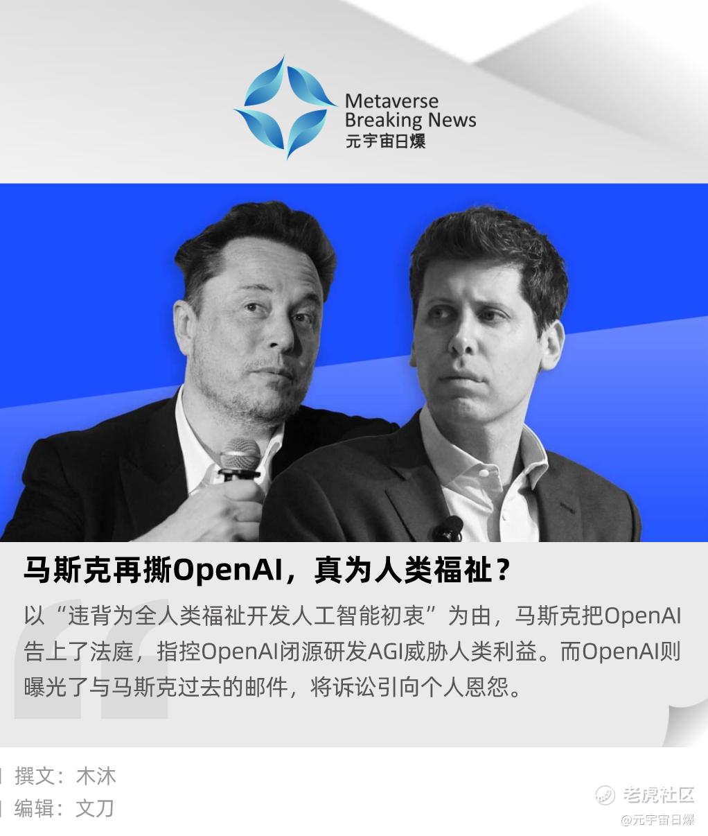 马斯克再撕OpenAI的“论点”还是人工智能风险,把“为人类福祉考虑”再次抛向公众舆论。