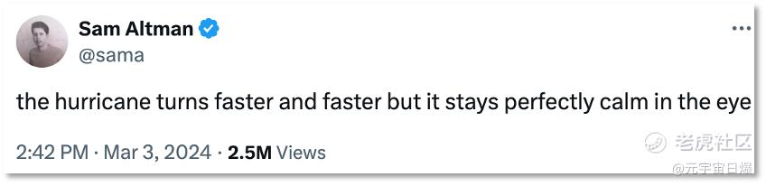 马斯克起诉后,OpenAI的CEO 山姆·奥特曼在X发布推文“飓风越转越快,但风眼内完全平静”,似乎透露出他应对这次起诉的平和心态。
