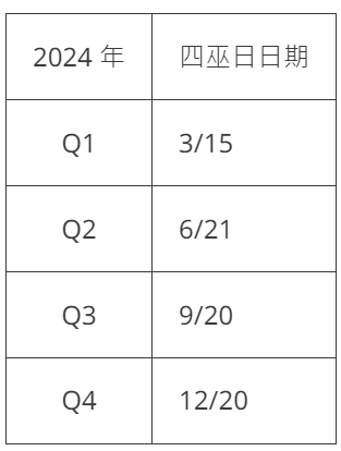 24年四巫日的日期,Q1为3/15,Q2为6/21,Q3为9/20,Q4为12/20。