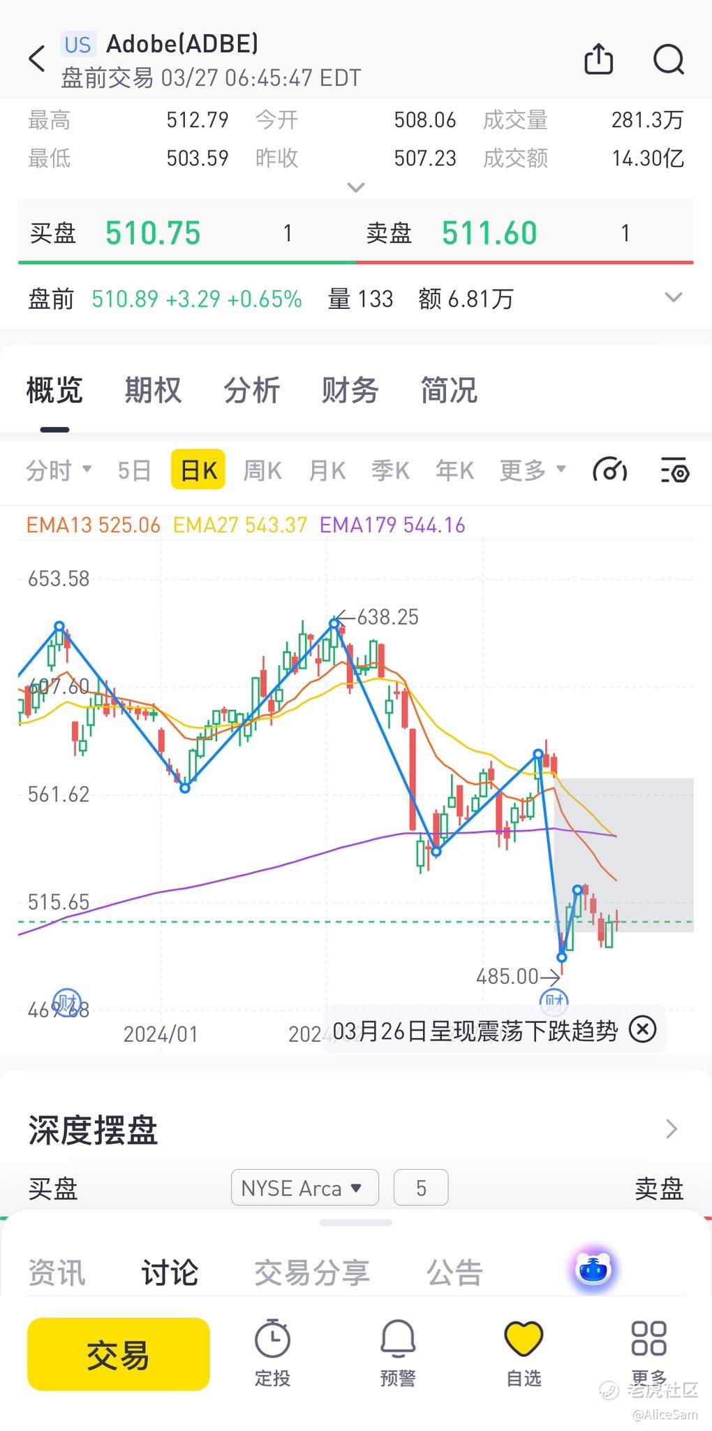 Anyway,没有多少利空消息,业绩这么优秀的情况下,我错过了485的Adobe,真的有点可惜了啊。我想找机会看看,有没有什么好位置进场跟着玩玩 [贱笑]