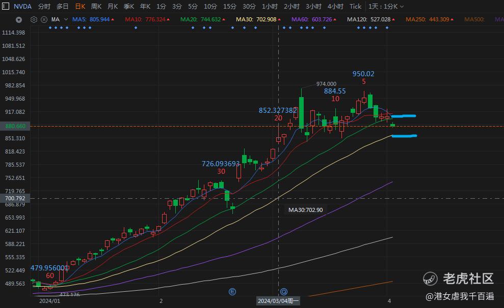 半导体经过上周的回调,昨晚表现尚可,美光涨近6%新高,SMCI和AMD都录得上涨,英伟达守住了898美元支撑,但上方5天线915美元附近的压力依然很大,能守住20天线已经很不错了,下方支撑860美元;
