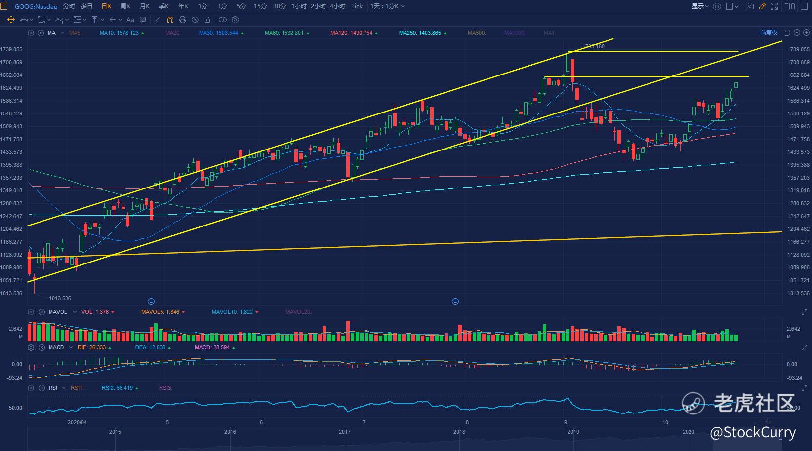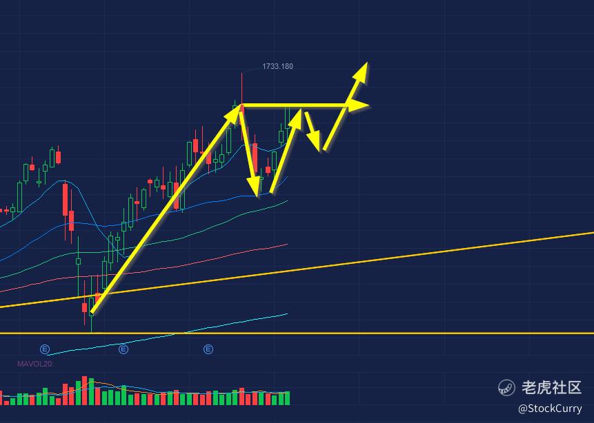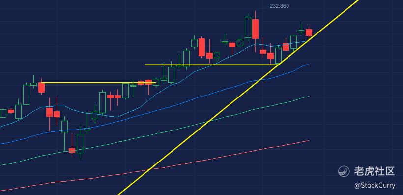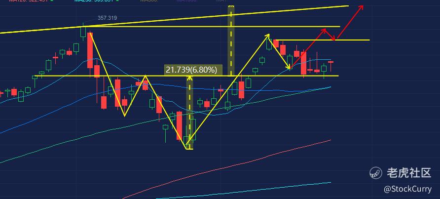 从K线图来看,股票做了一个圆弧整理,还差一点点就涨到了下跌之前的高点。所以图形上来看我还是希望财报利好上涨到之前高点,如果是这种走势的话那后面还是看涨。