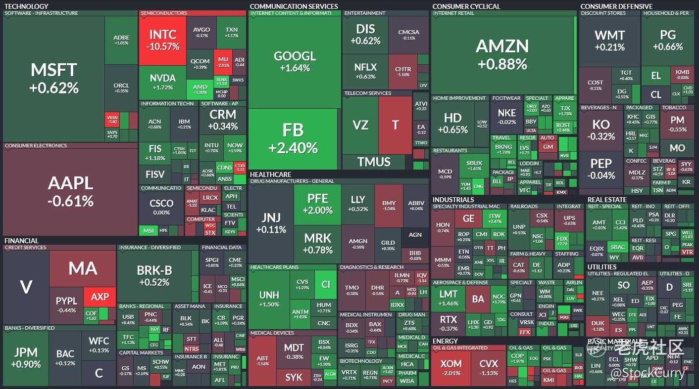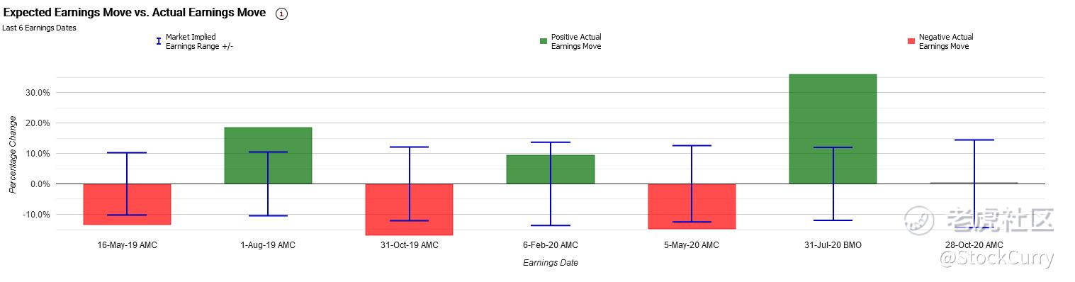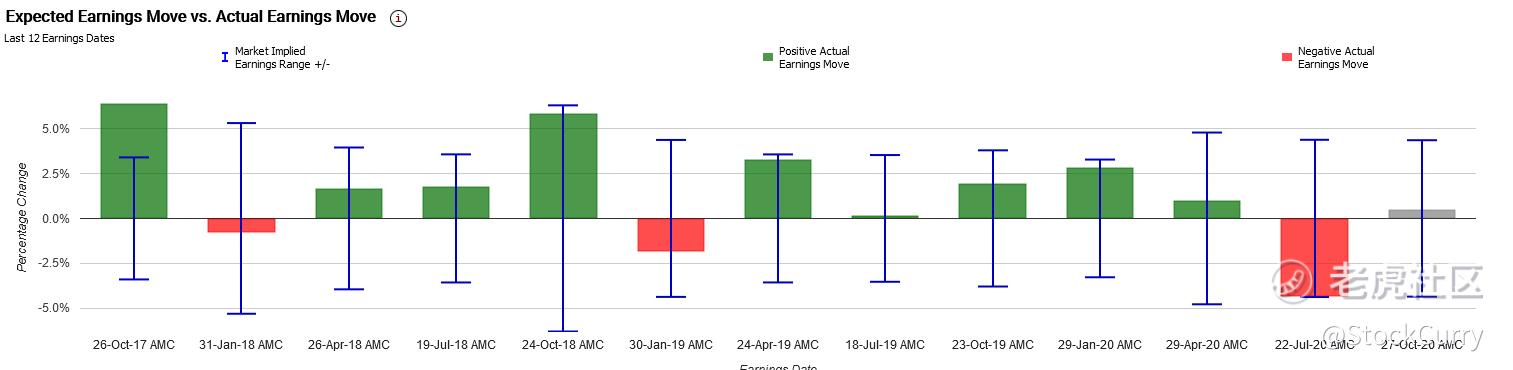 微软在过去的6个月中表现要落后于苹果,亚马逊,但是全年到现在还是涨了35%,这其中少不了二三季度在家办公热潮的影响:办公软件,电脑,游戏在过去的二个季度中都有不少的涨幅,所以微软在过去的财报中表现都很好,基本都在预期之内,而且涨多跌少,很有可能这次也是上涨的。