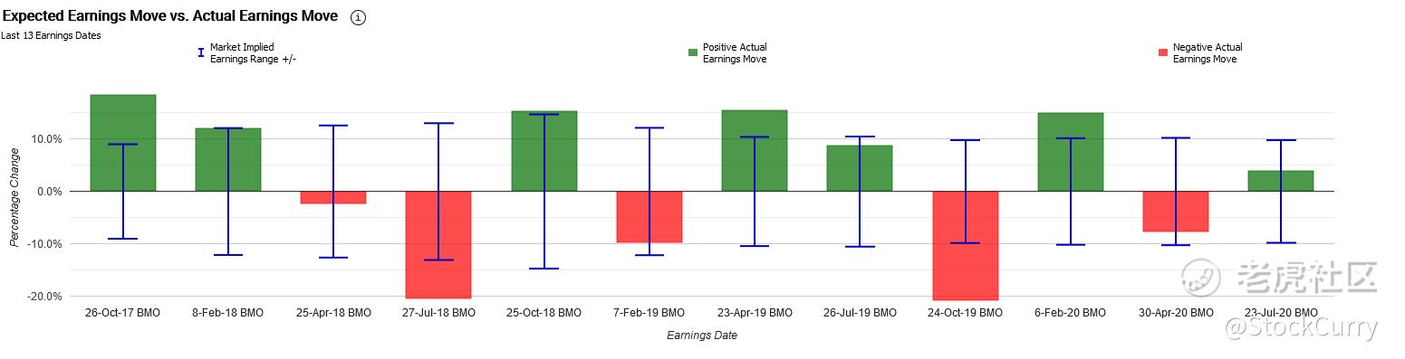 那么下周一盘后就发布财报,从最近的13次财报中可以看到跌多涨少,由其是最近四次财报,三次下跌,只有一次上涨,从概率来讲这次很可能还是下跌。