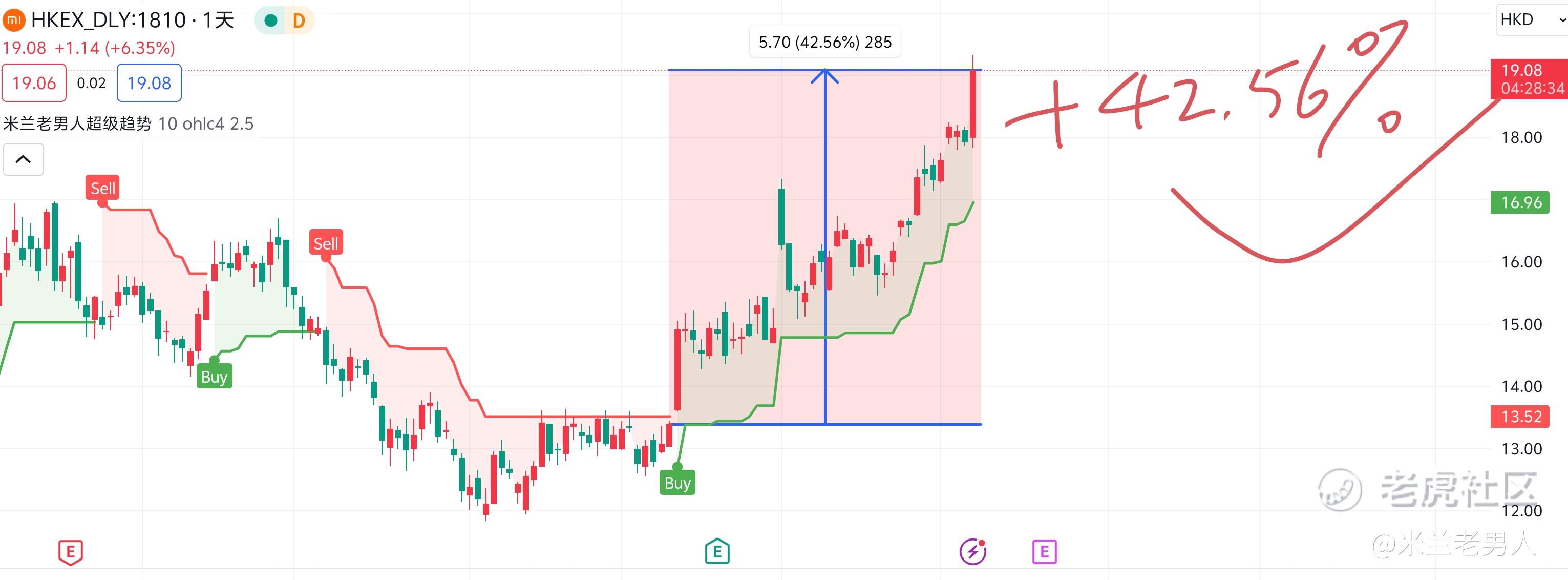 $小米集团-W(01810)$ 小米今天强势大涨,跟着飞哥趋势指标走,这波收益已经+40%了,飞哥老娘买了小米,今天笑high了[呲牙]