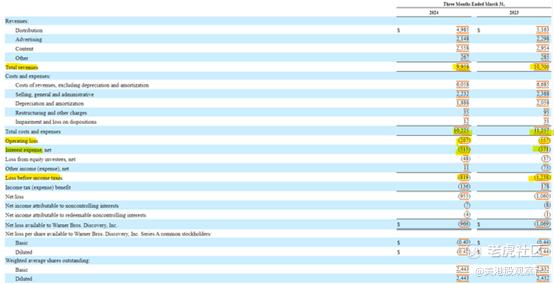 华纳兄弟探索公司收益结果