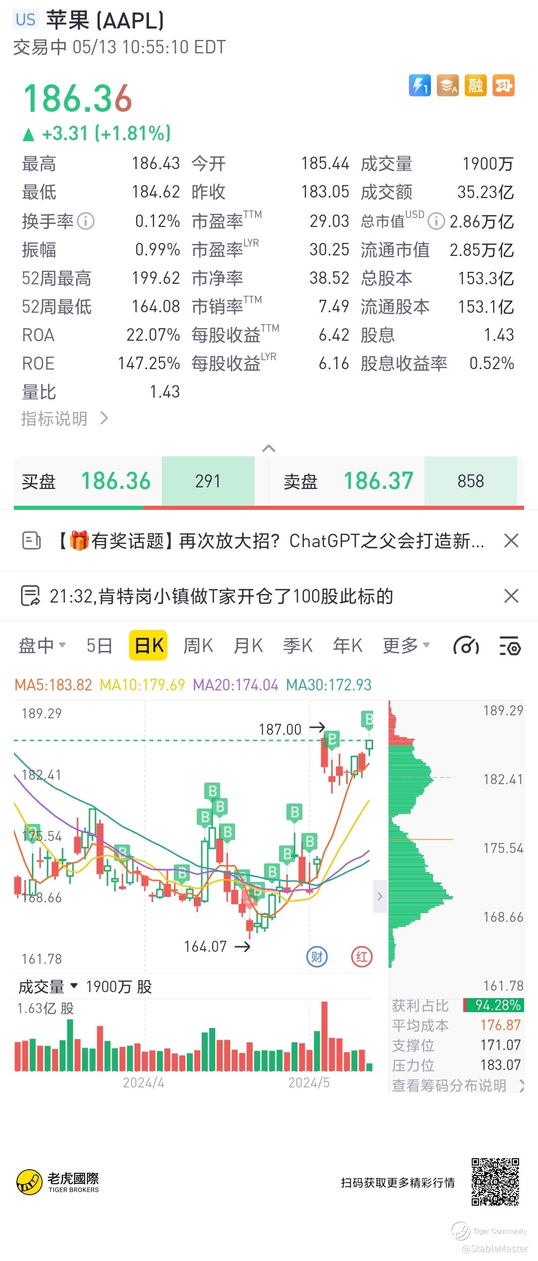 $苹果(AAPL)$ 我在过去一个月对苹果加仓了超过十次,图片中展示了我加仓的时机。