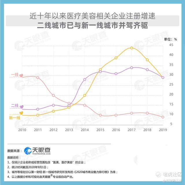此外,根据天眼查app数据报告,可以更直观的表现出去年医美产业的降速情况。二线城市与新一线城市并驾齐驱,但双方都出现降速情况。尤其是一线城市,所谓的增速"并驾齐驱",其实是由于新一线城市降速幅度更大一些。这种情况发生,离不开那些黑医美给行业带来的"污名化"。