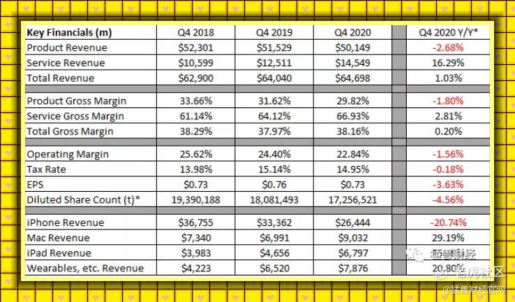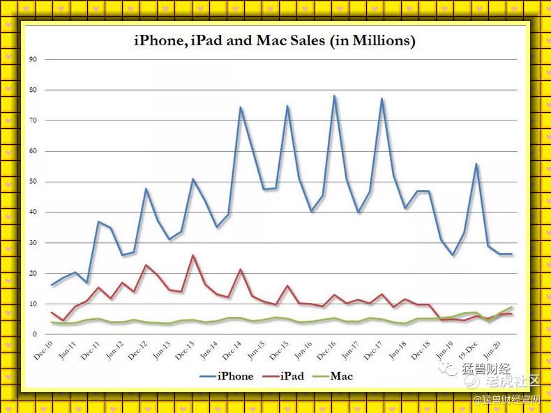 * 除通常使用百分比的类别外,与上一年同期比较的变动百分比。前段时期的股票计数调整了今年的股票分割。来源:苹果季度报告