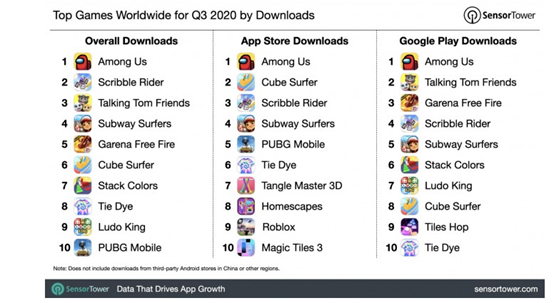 东南亚等海外地区疫情仍在不断蔓延,多国封锁,这样的环境推动了全球游戏下载量和收入不断增长,像“吃鸡”这类消磨时间的游戏会更受玩家喜爱,三季度活跃用户增速达5.72亿,保持了高两位数的增长(+78.3%),预计四季度会继续保持这种活跃势头(10月《Free Fire》下载量排名第四,较为稳定)。