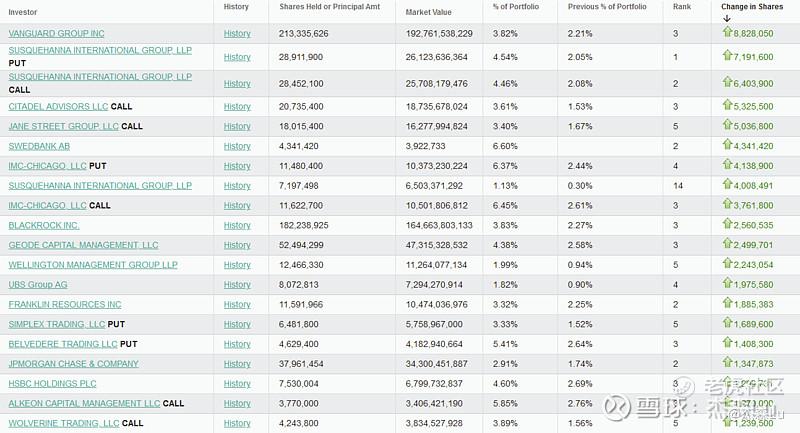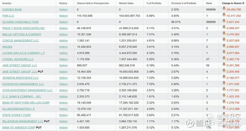 减持机构:Ballie Gifford, Coatue, Millennium, D.E. Shaw, Druckenmiller的Duquesne Family Office。