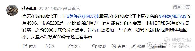 4月份在$750加仓抄底了英伟达,在$910减仓了一半股票,都有披露。