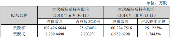 图为:贾跃亭及贾跃民股份减少前后持股情况