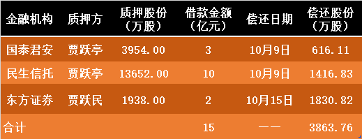 10月9日,法院处置了1416.83万股和616.11万股分别用于偿还民生信托和国泰君安债务;10月15日,法院处置了1830.82万股用于偿还东方证券债务。