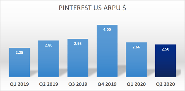 然而众所周知,2020年二季度广告市场紧缩,导致Pinterest的定价权同比下降。