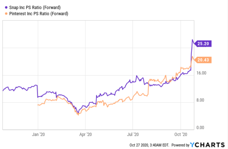 Pinterest的定价约对应20倍远期市销率。表面上看,这似乎没啥吸引力,尤其是考虑到Snap的定价已经是25倍远期市销率。