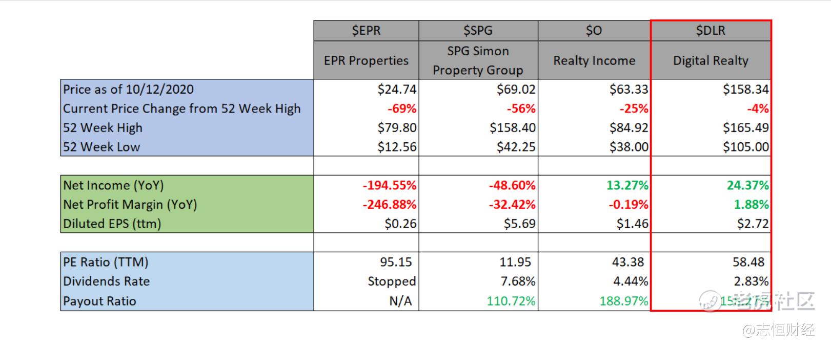 · DIGITAL REALTY (DLR): 数据中心,科技中心,建造服务器。