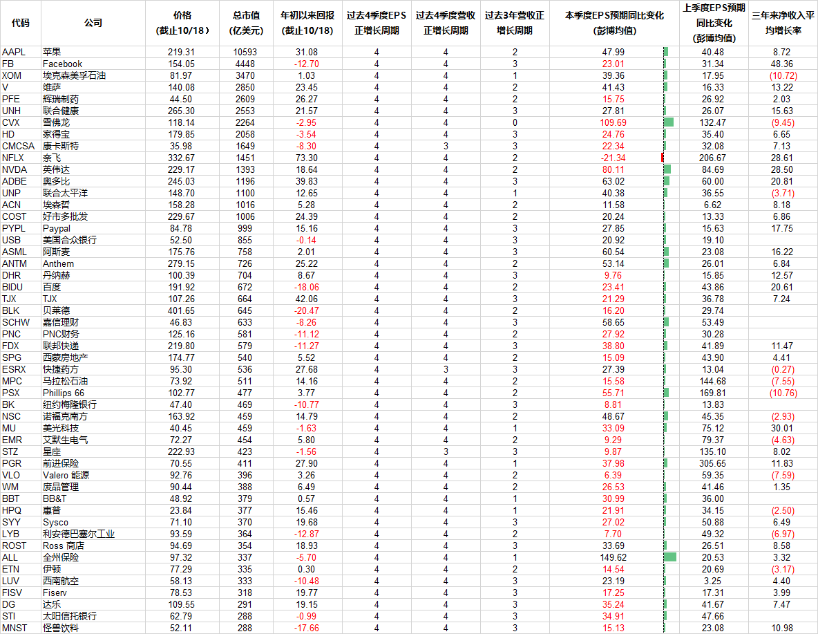 这里面很多是我们熟悉的公司,并且有很多已经连续增长了多个季度,至于未来是否有同样的增长潜力,是很值得关注的。