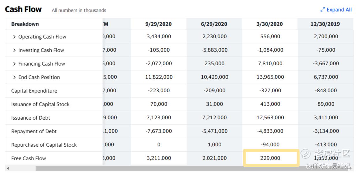 图:可口可乐现金流量表,来源:Yahoo财经