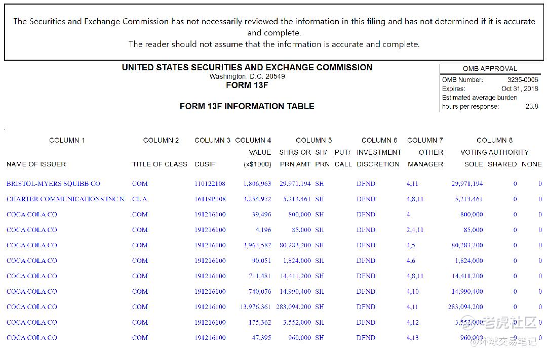 图2:2020年11月17日伯克希尔三季度13F文件显示巴菲特三季度对前十大重仓股中可口可乐仍然在列