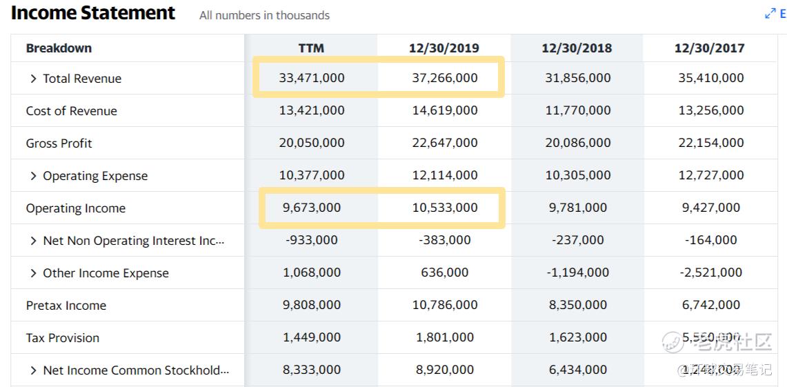图:可口可乐利润表,来源:Yahoo财经