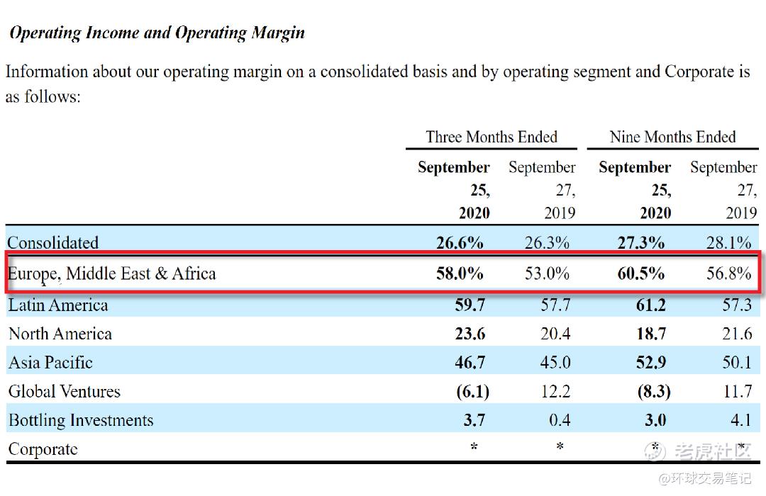 对可口可乐公司来说,欧洲是非常重要的一块市场,因为该市场是决定可口可乐盈利多寡的很大一个关键,通过最近的一份财报(2020年三季报)可以应征上述观点。