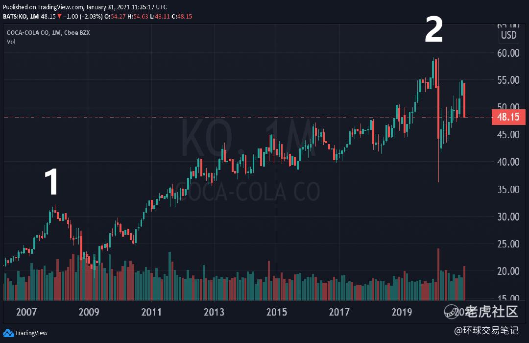 图1:可口可乐K线图(月线)