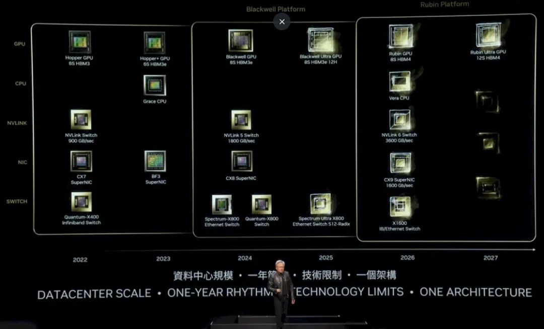 在台北举行的年度 Computex 贸易展上,Nvidia 的联合创始人兼首席执行官在主题演讲中再次试图将生成式人工智能革命(他称之为第二次工业革命)置于其背景中,并一窥人工智能的未来,尤其是 Nvidia 硬件的未来。我们获得了 GPU 和互连路线图的预览,据我们所知,这是直到最后一刻才列入计划的一部分,黄仁勋和他的主题演讲通常都是这样。