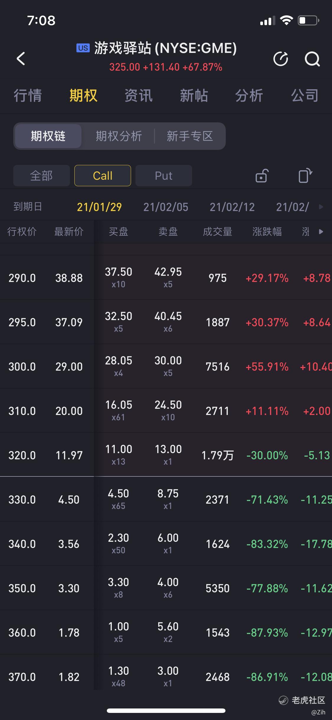 - 知黑守白_7525·2021-01-30能看到200以上的期权情况吗?290以上的期权价格+手续费都高于325,所以1月29的期权都不会行权,空头暂时不用回补这些股票。而且按照wsb上面说的股价大于200就很好了,320是极好的,所以如果能看到1.29的200以上的期权数量,大概率就可以知道下周空头要买入的股票数量和股价走势,如果股价继续走高,2.5就是下周五的期权行权数量决定了以后能继续走多高1举报