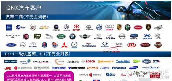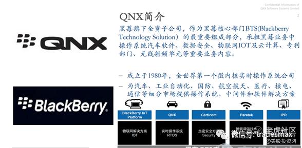 汽车核心操纵系统QNX是黑莓旗下全资子公司,是全世界第一个实时操作系统公司。