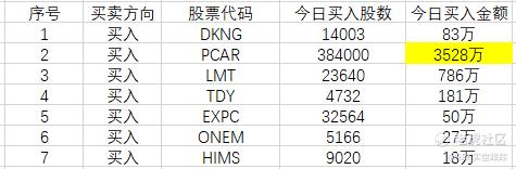其他近期开仓的股票均获得买入,虽然金额较小。