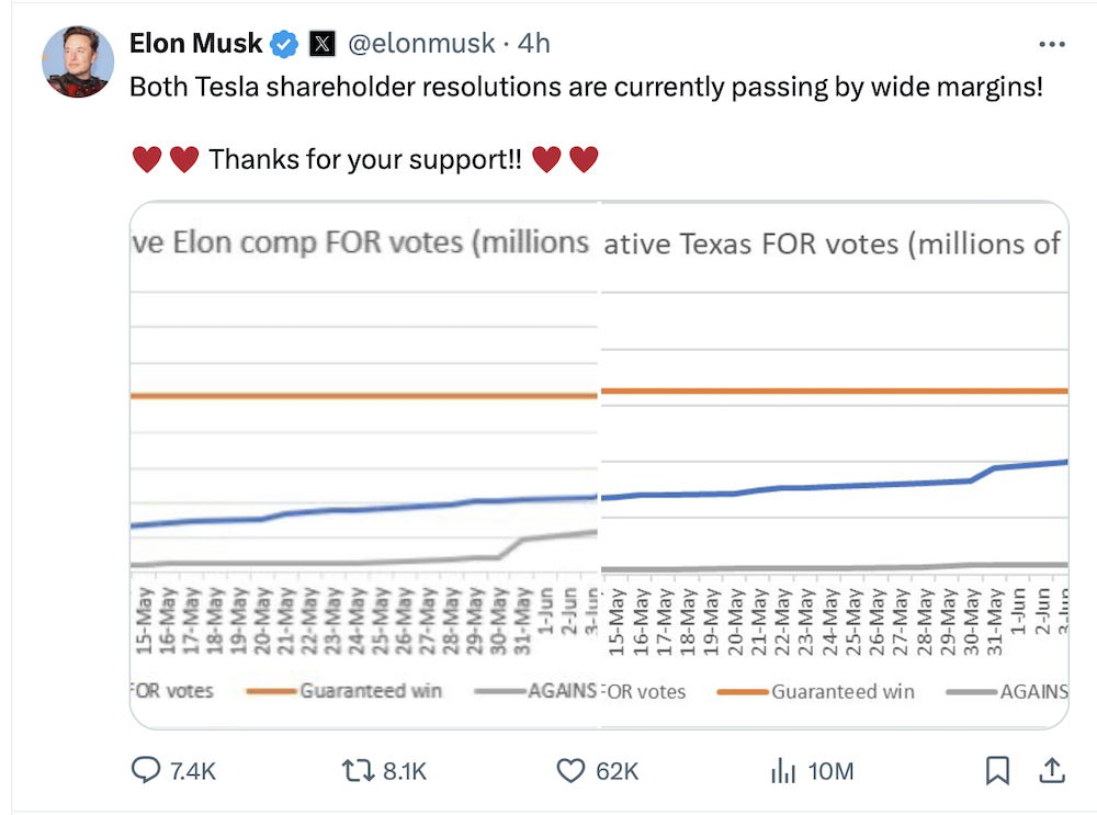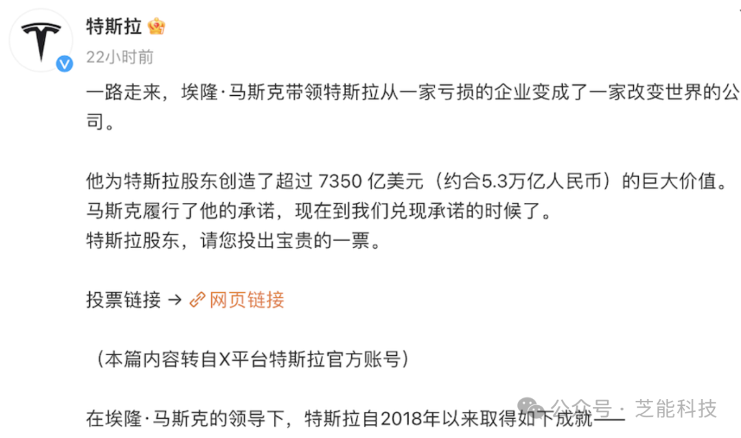 特斯拉的高管们也纷纷发声支持,强调马斯克对公司的长远规划和战略决策至关重要,认为他的智慧、勇气和决断力是特斯拉实现非凡增长的关键。特斯拉对外事务副总裁陶琳的拉票微博,更是体现了公司内部对马斯克领导力的认可与依赖。