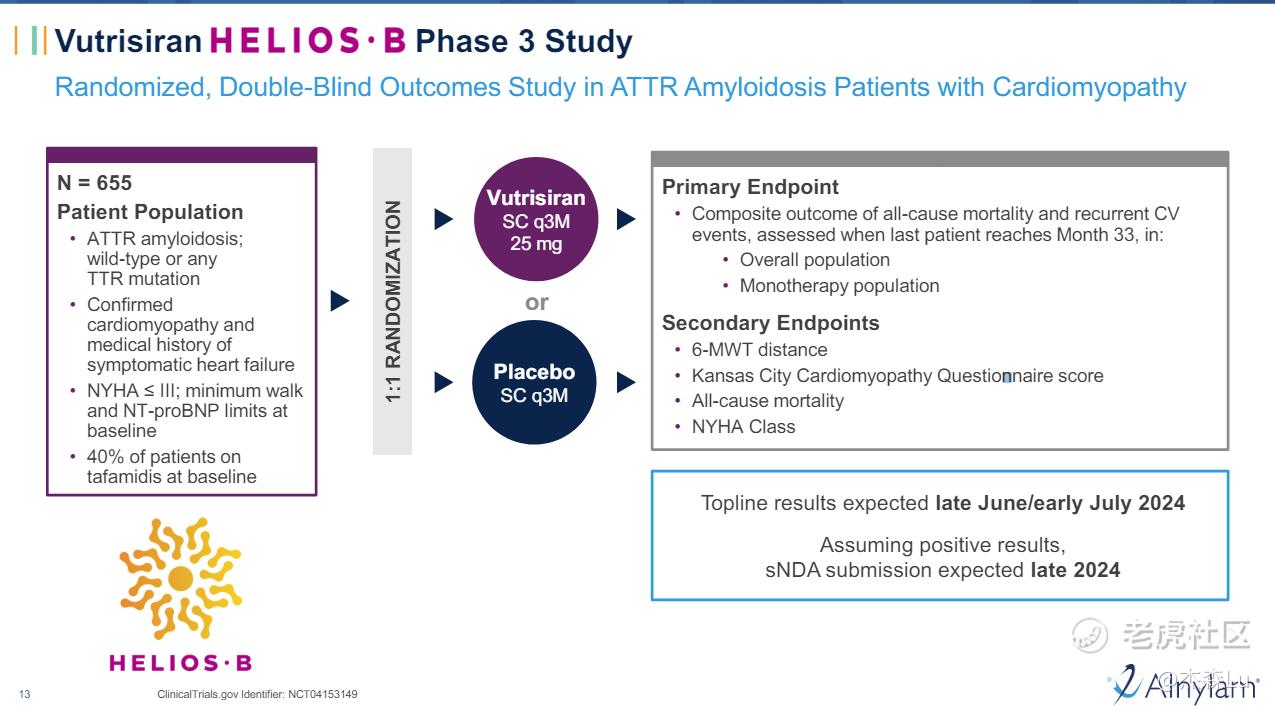- 杰森Lu·2024-06-24$阿尔尼拉姆制药公司(ALNY)$ ATTR-CM三期成功,股票大涨30%,恭喜发财点赞举报