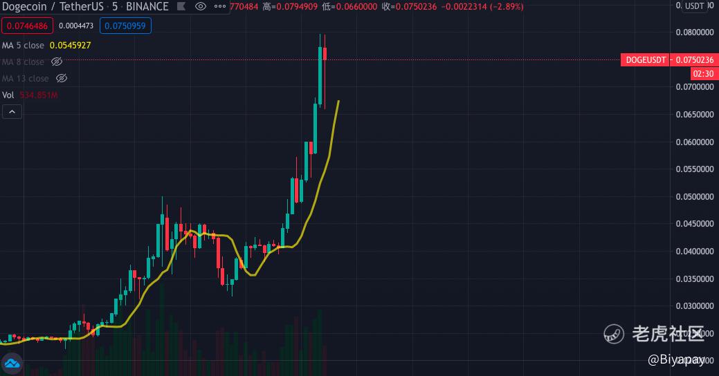 不仅如此,FTX交易所也趁势推出WSB指数季度合约,指数内容就包含了狗狗币。据FTX交易所数据,继昨日单日大涨402%后,今日狗狗币又再度上涨约50%,截稿前,狗狗币价格为0.07502美元。