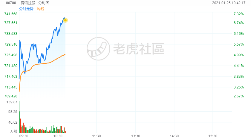 1月25日,腾讯控股涨超7%,盘中最高价达740港元,再创历史新高,总市值超过7万亿港元,折合人民币约5.85万亿元,超越国有六大银行市值之和。