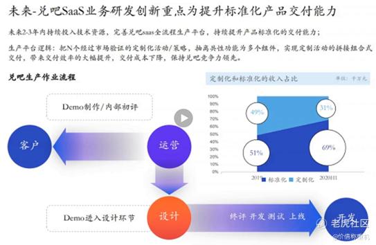 但是SAAS产品的一个标准化的过程,前期是需要经过大量定制化项目实施,然后找到每个项目共性的部分进行模块化,这个过程中慢慢打造出一个高标准化的SAAS产品。