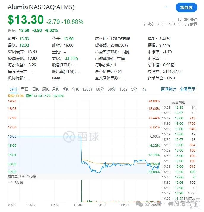 6月28日,Alumis(NASDAQ:ALMS)在美国纳斯达克交易所上市,发行价为每股16美元,发行1312.5万股,IPO规模达2.1亿美元,是今年以来,IPO发行规模第三大的生物医药公司。