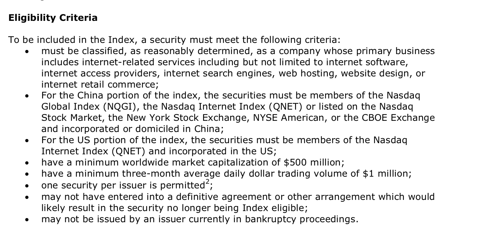 4)10只市值最大的美国互联网公司,必须是纳斯达克互联网指数(QNET)成分股的美国公司。(图片来自指数编制方法说明书)