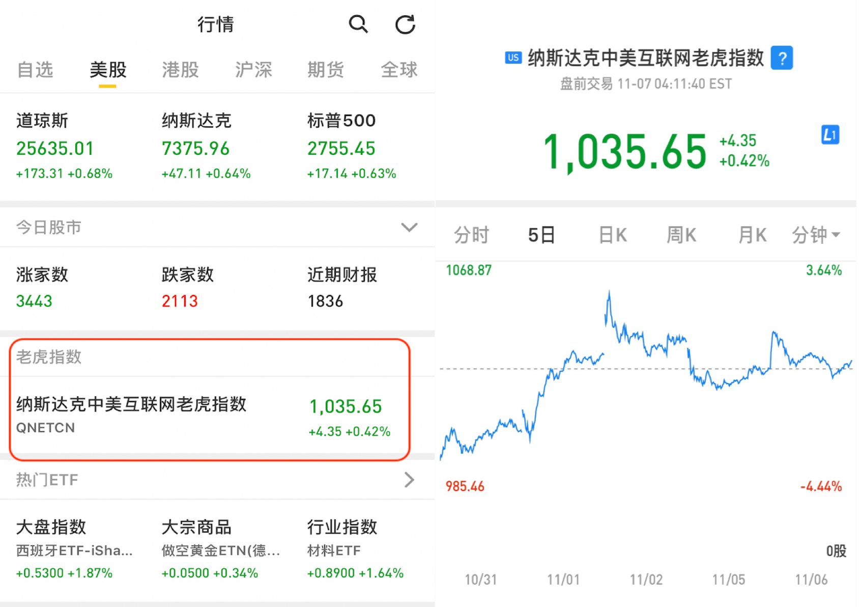 相信大家都注意到了,在老虎APP美股行情页面有一个新的“$纳斯达克中美互联网老虎指数(QNETCN)$”!(看不到的请更新APP版本)直接搜索代码:$(QNETCN)$ 也可以!(行情来源Tiger Trade APP)