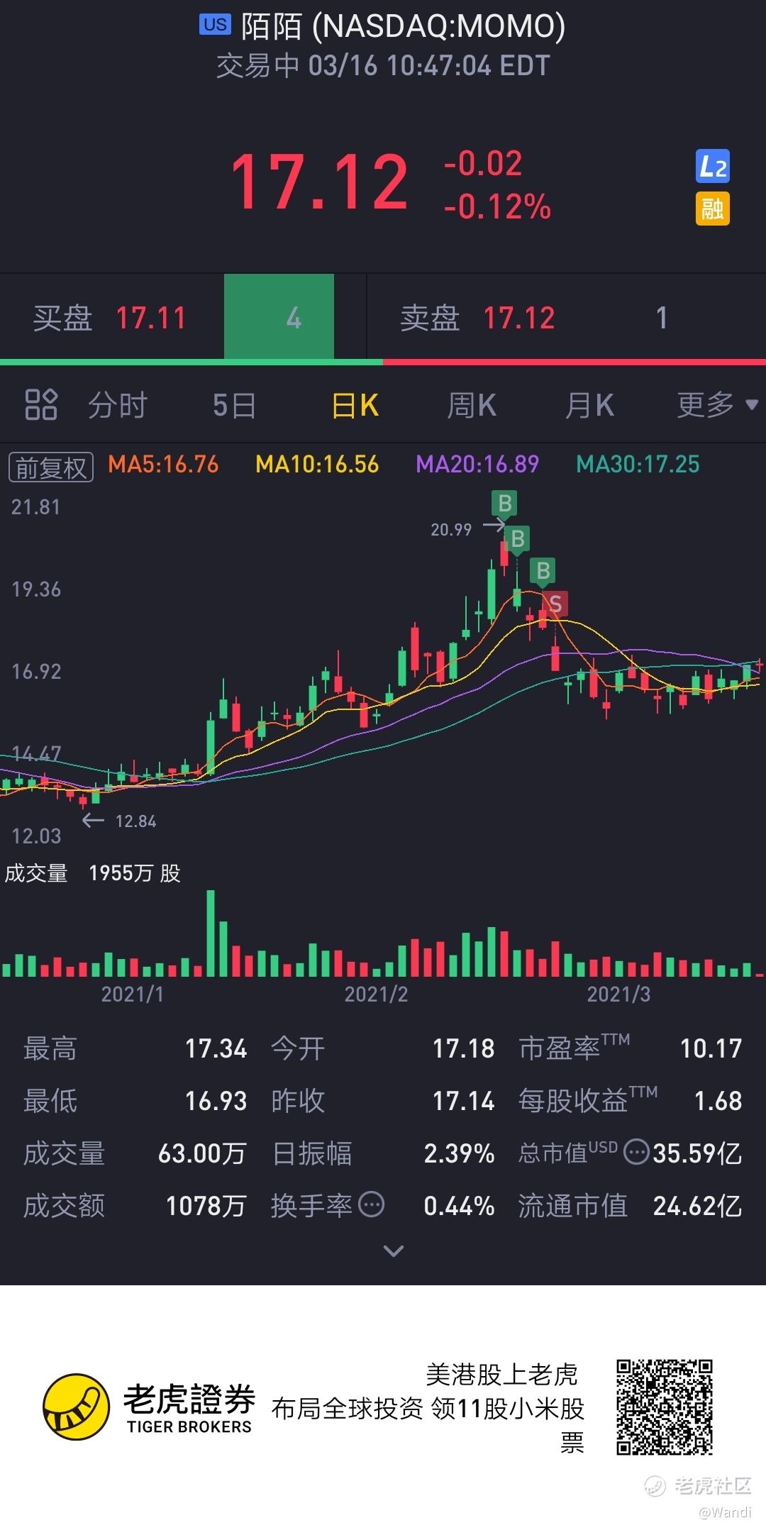 $陌陌(MOMO)$现金流十分的充裕,旗下的探探前一段时间用过,改善了不少,其中也新添了直播功能,而且财报显示近几年一直盈利,虽说利润有点下滑,但是感觉股价不大受追捧啊,换手率较低,难道是流通市值太大导致的?[傲娇]