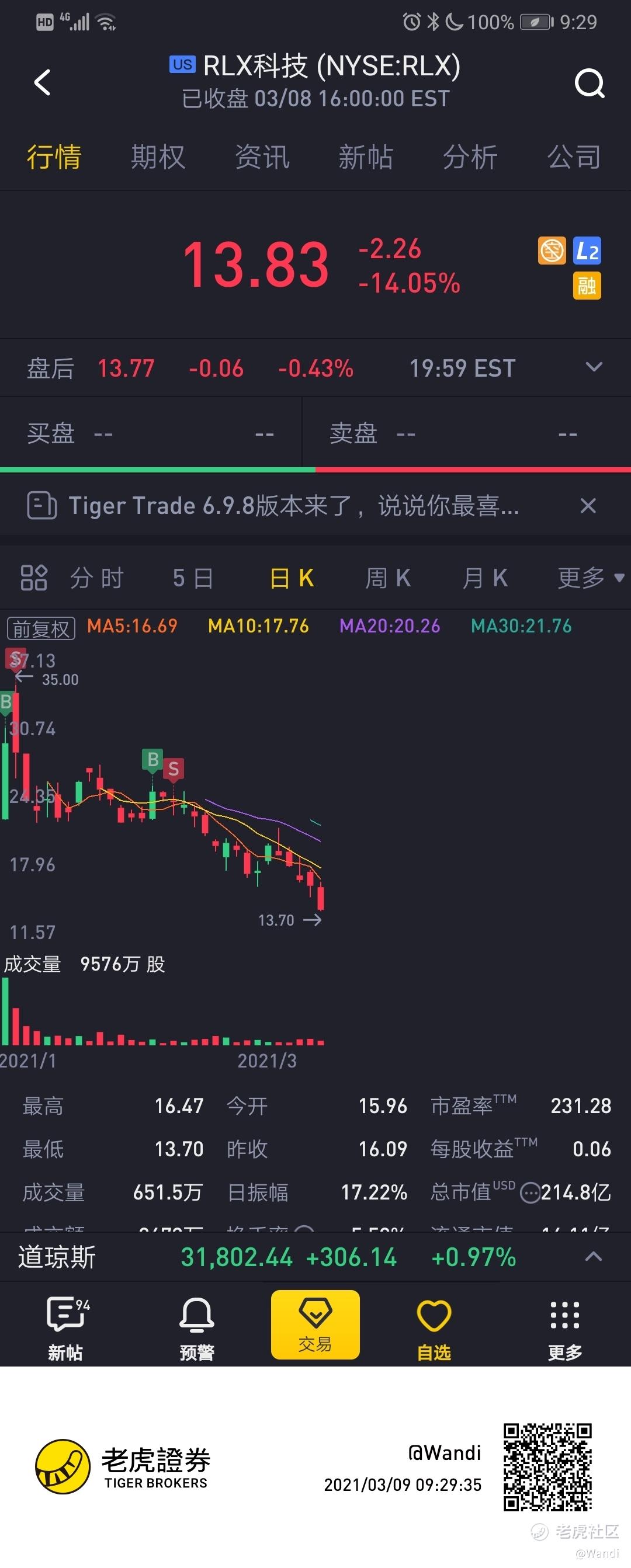 $RLX科技(RLX)$买过这支股票,估值太高,当时卖了主要有几个原因