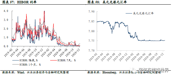 货币市场利率:截至12月18日,相较于上周五,本周HIBOR隔夜利率上升0.1bp至0.05%,7天利率上升0.7bp至0.09%,1个月利率上升3.1bp至0.28%。