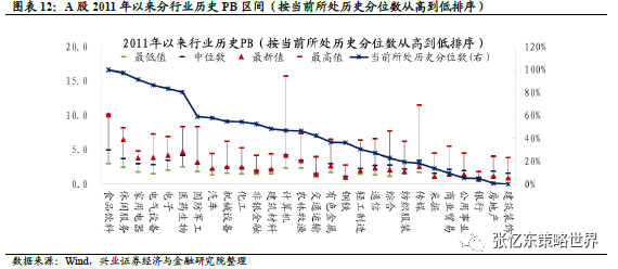 行业估值从市净率的角度,特征如下(以下涉及分位数时,其历史区间为2011年第一个交易日至今):