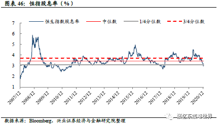 当前恒生指数的股息率为2.98%,与上周持平,低于2006年9月以来的1/4分位数水平。